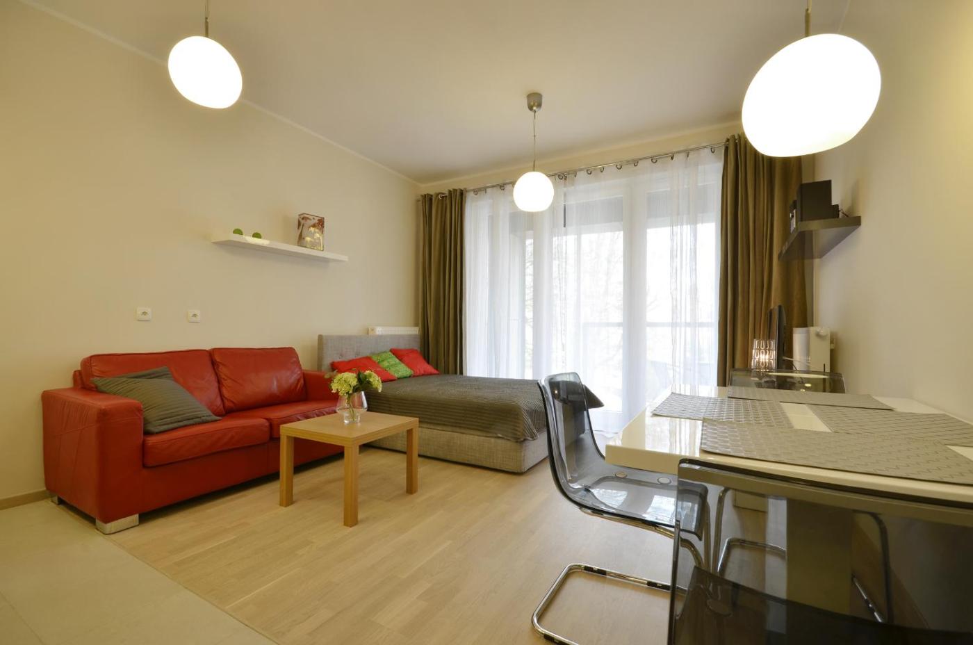 Apartament z 1 sypialnią. Boasting a private entrance, this apartment also comes with 1 bedroom, a seating area and 1 bathroom with a bath and a shower. Guests can make meals in the kitchenette that features a stovetop, a refrigerator, a dishwasher and kitchenware. This apartment has a washing machine, a tea and coffee maker, a flat-screen TV with cable channels and a balcony. The unit has 1 bed. Apartament - 3 osobowy. Powierzchnia pokoju ok.: 26 mkw.