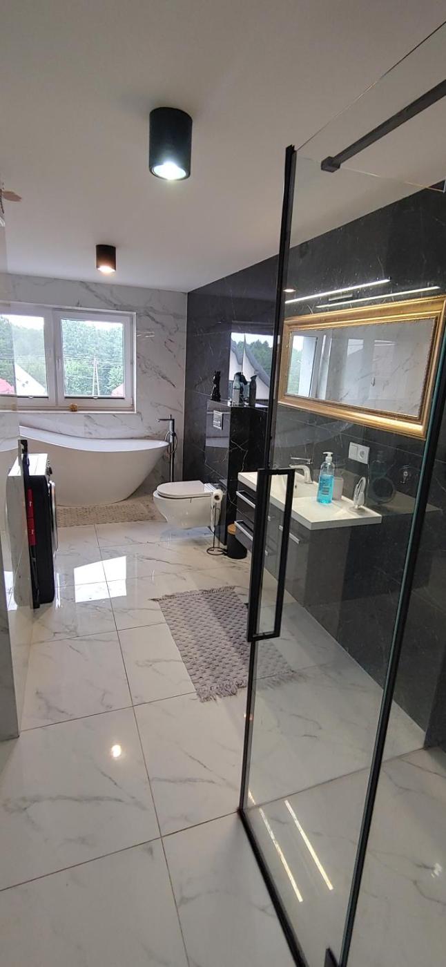 Domek z 2 sypialniami. This spacious chalet comes with 1 living room, 2 separate bedrooms and 2 bathrooms with a bath and a shower. In the well-equipped kitchenette, guests will find a stovetop, a refrigerator, a dishwasher and kitchenware. Boasting a terrace with garden views, this chalet also features a washing machine and a flat-screen TV with streaming services. The unit has 3 beds. Domek - 6 osobowy. Powierzchnia pokoju ok.: 100 mkw.