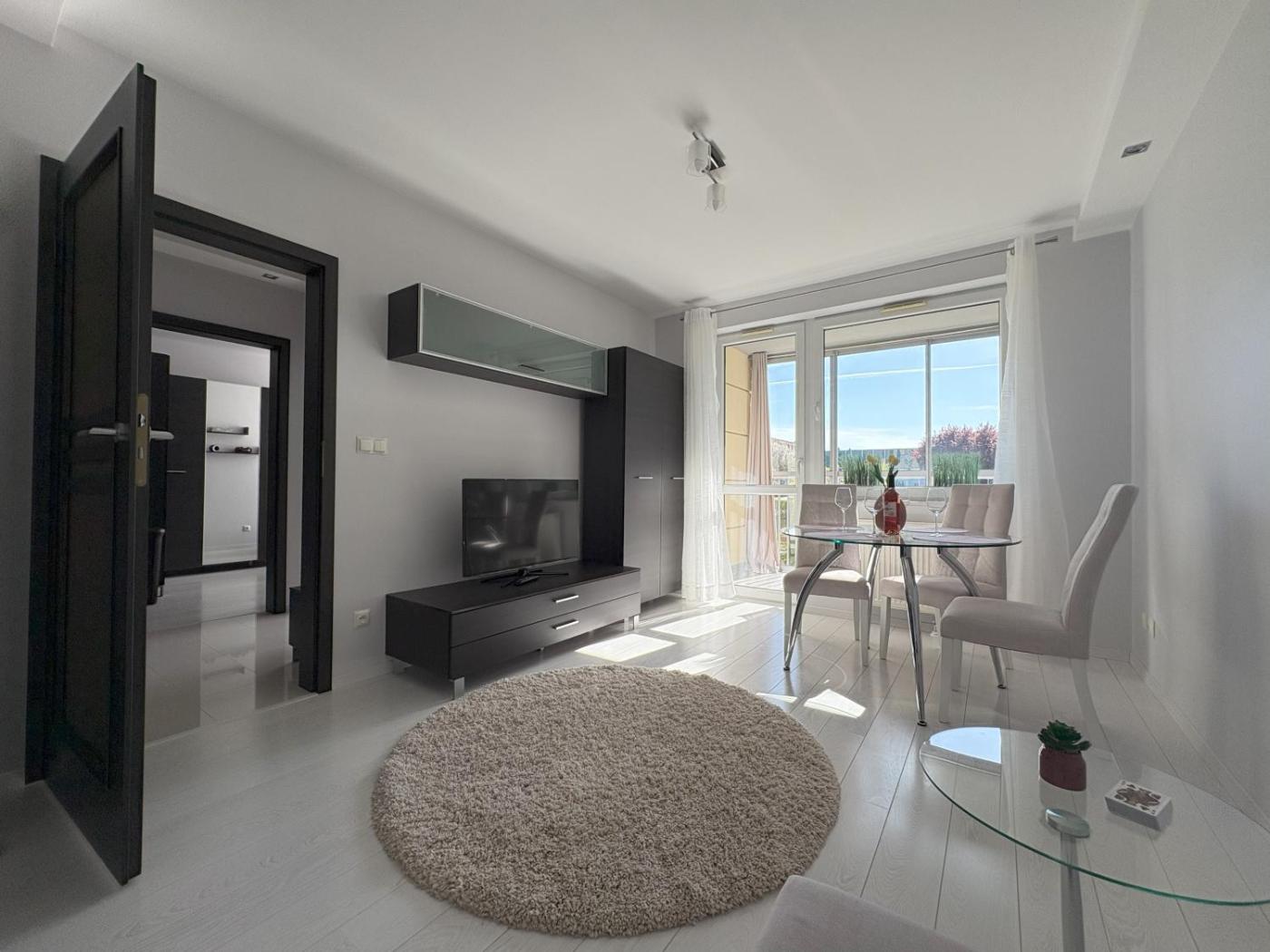 Apartament z 1 sypialnią. This apartment includes 1 living room, 1 separate bedroom and 1 bathroom with a shower and a hairdryer. In the kitchen, guests will find a stovetop, a refrigerator, a dishwasher and kitchenware. This apartment has a washing machine, flat-screen TV with cable channels, garden views, as well as winechampagne for guests. The unit has 2 beds. Apartament - 4 osobowy. Powierzchnia pokoju ok.: 46 mkw.